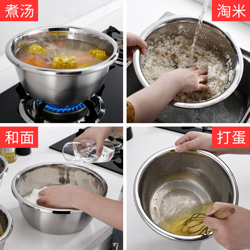 Stainless steel basin thickened and deepened round basin household kitchen with soup and noodles washing vegetables drain basin
