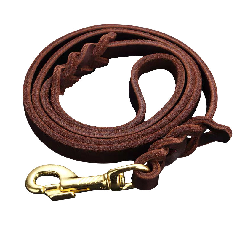 German Shepherd cowhide leash top layer cowhide brass hook walking dog leash dog chain pet training dog rope horse dog golden retriever leash