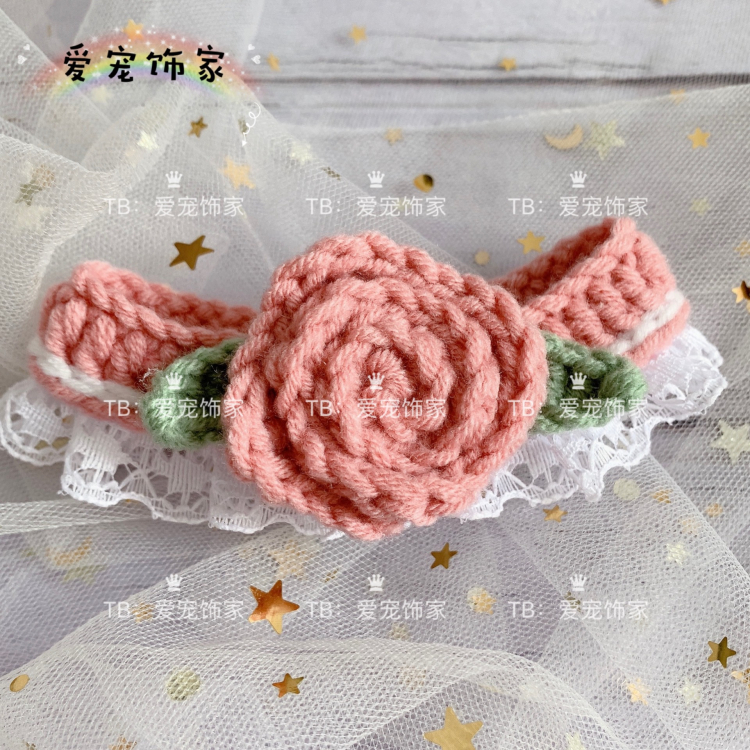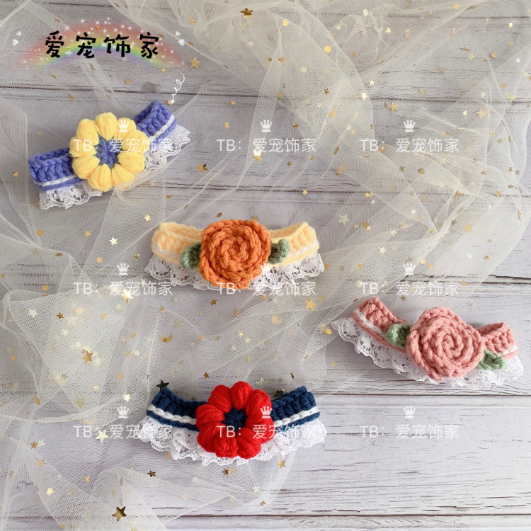 Hand Knit Rose Cat Flower Cat Item Ring Lace Lace Lace Sunflower Pooch Pet Collar neckline Neck Decoration