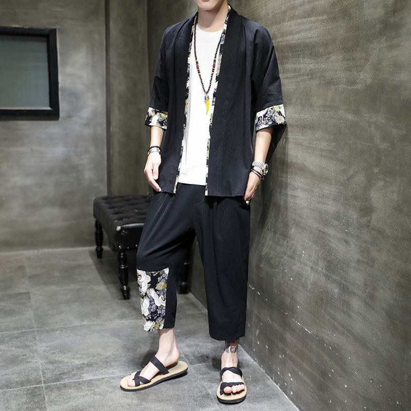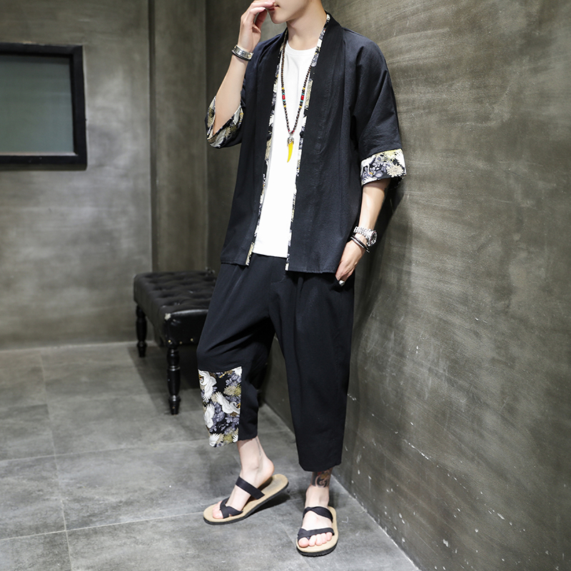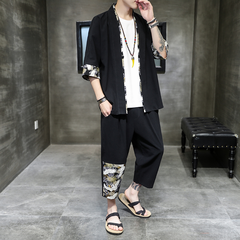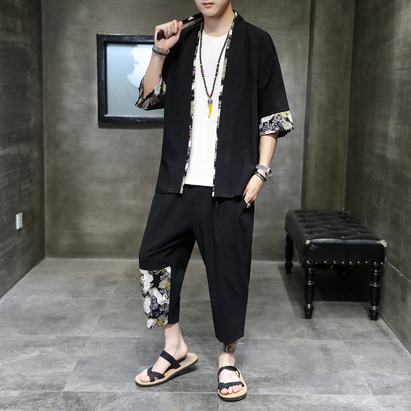 China wind men's clothing short sleeves T-shirt suit linen dawns two sets of chubby size with big ruler code trendy cotton linen clothes summer
