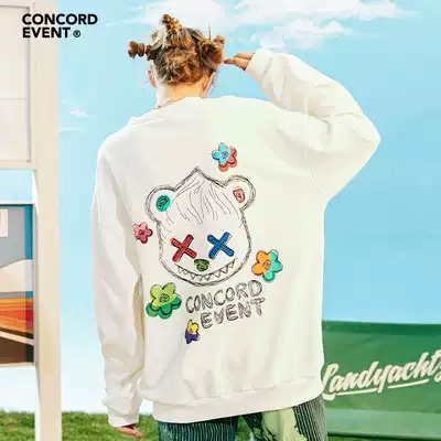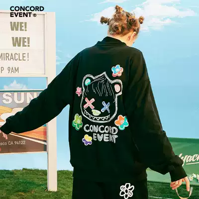CONCORDEVENT spring casual coat men's national tide loose bear bear daisy print HipHop long sleeve lovers