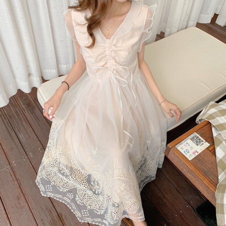 Meal Squad Fairy Fluttering Nude Dress Delicate crocheted flying sleeves Fairy exclusive dress