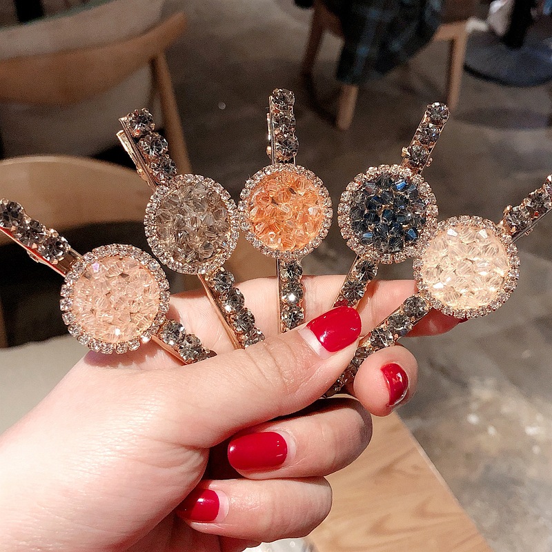 Korea ins exquisite crystal travel hairpin super fairy bangs clip cute rhinestone one word edge clip headgear hair accessories female