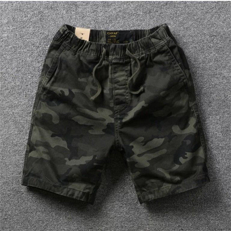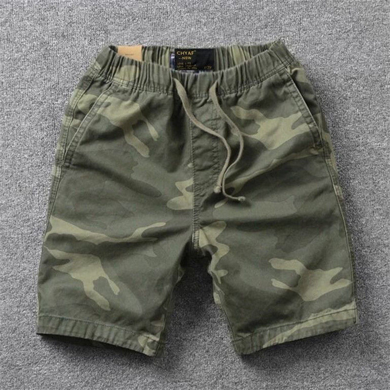 American vintage camouflage casual shorts men's cotton loose three-point four-point pants sports running wash old tide brand