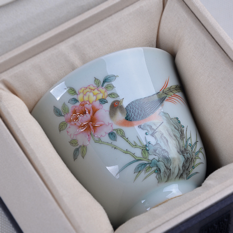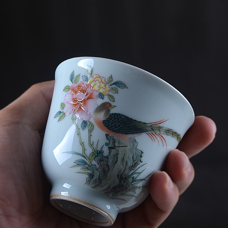 Kairunju Antique Kung Fu Tea Cup Hand-painted pastel brocade chicken flower and bird master cup Enamel color Jingdezhen tea set single cup