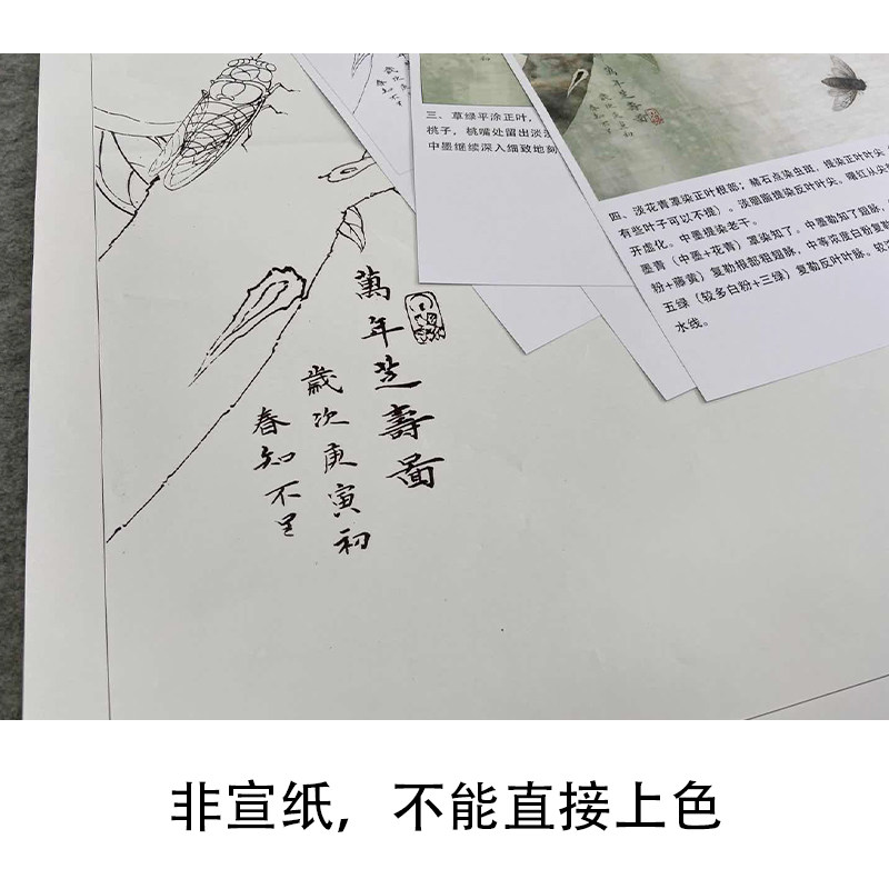 (step by step) Li Xiaoming's stroke white sketch manuscript Birthday Peach Know The Fighting Square Original size 66 × 66 cm Flower Bird Line Draft with A3 Step Map and Use Color Description of Paintdrawing KB22
