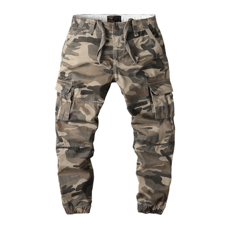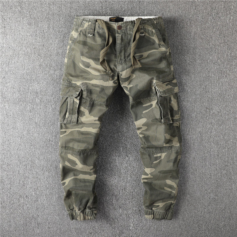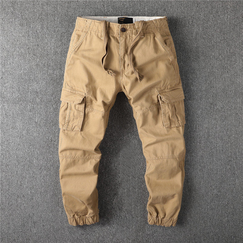 Autumn and winter cotton thick men's military uniform loose small foot workwear multi-pocket pants corset legs closed long pants Harlan pants men