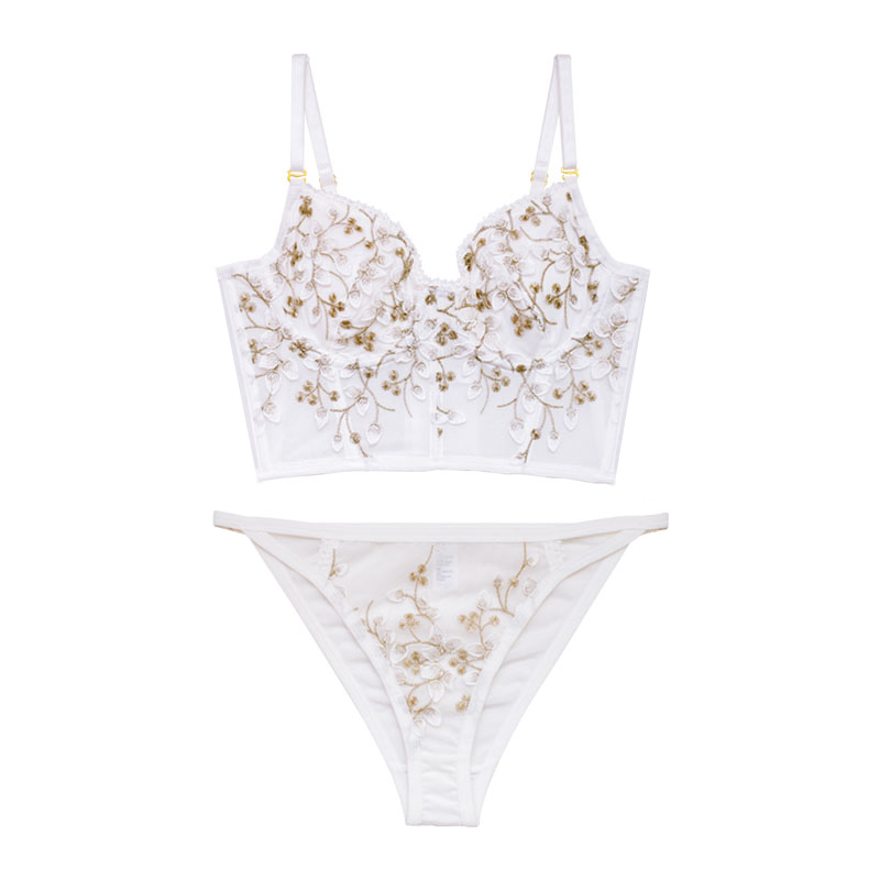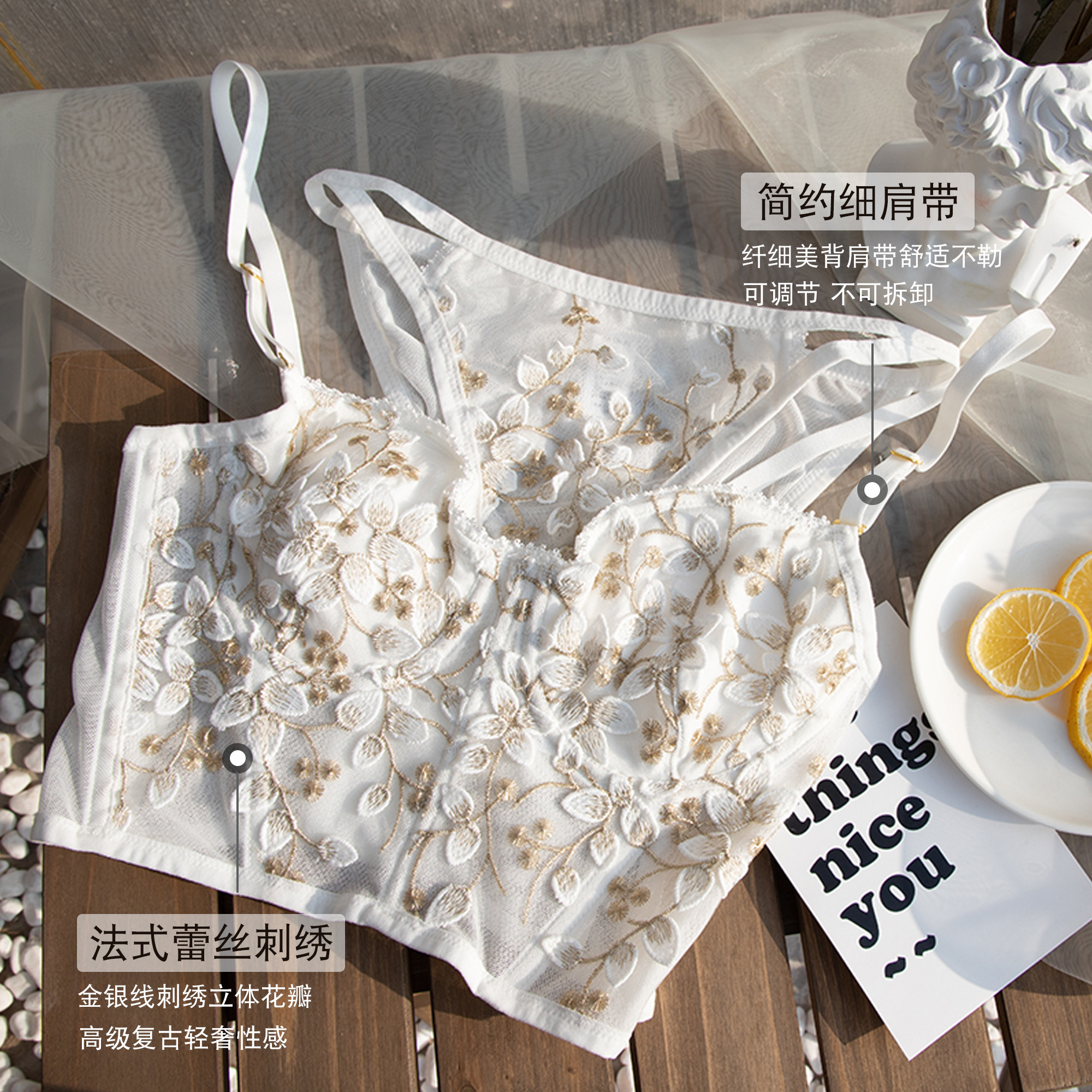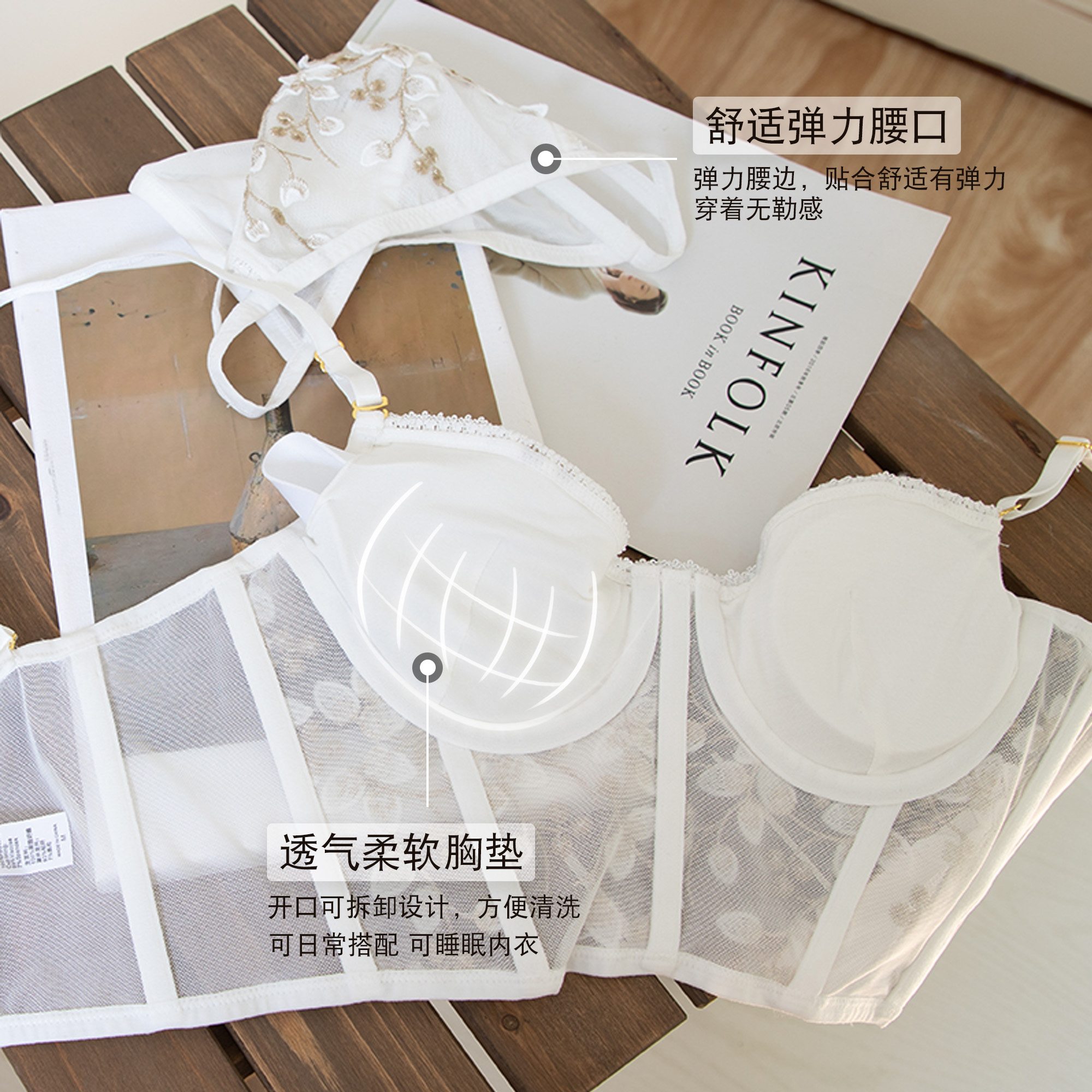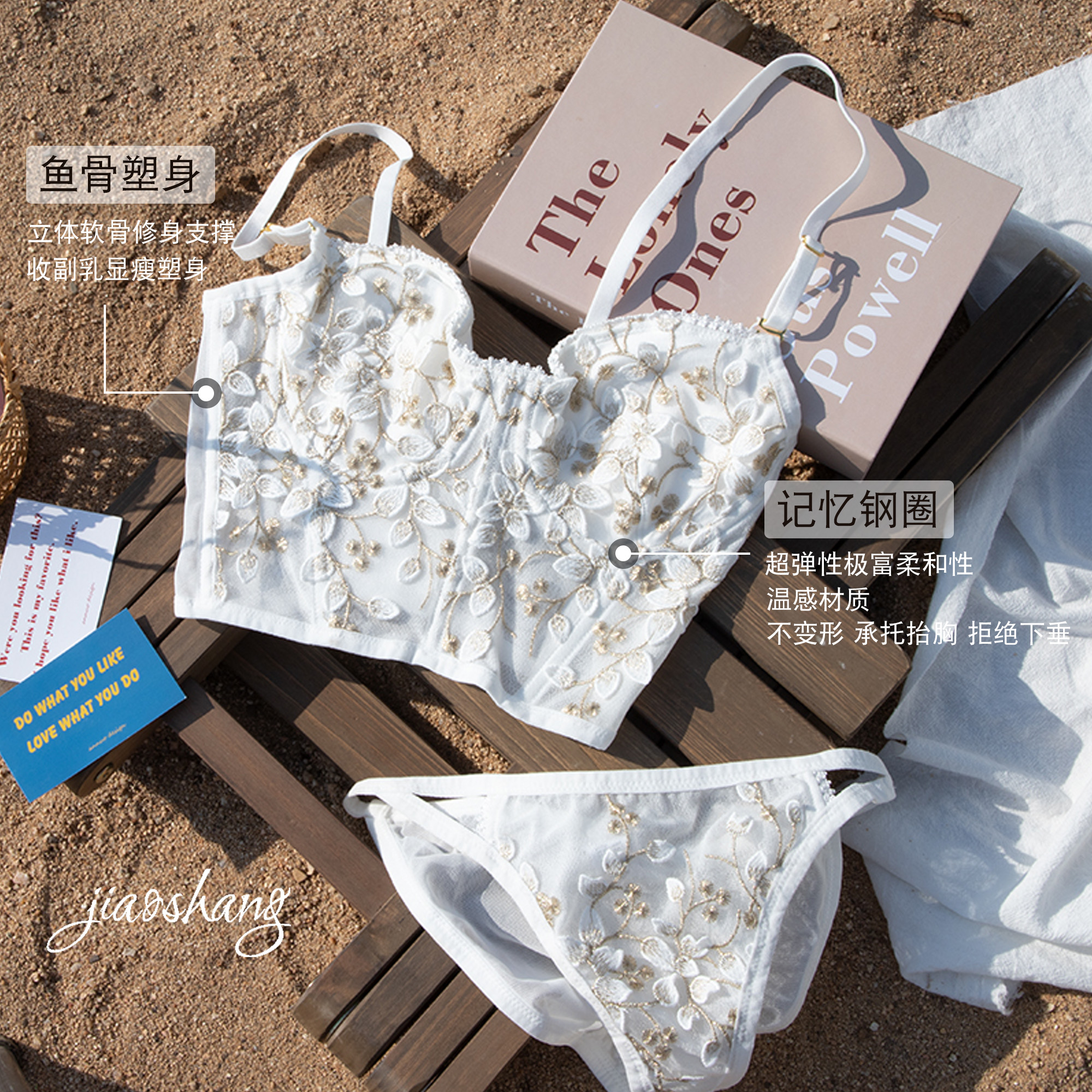 French bra set embroidered heavy lace outside wearing underwear girl ultra thin sexy cute gathered fishbone corset