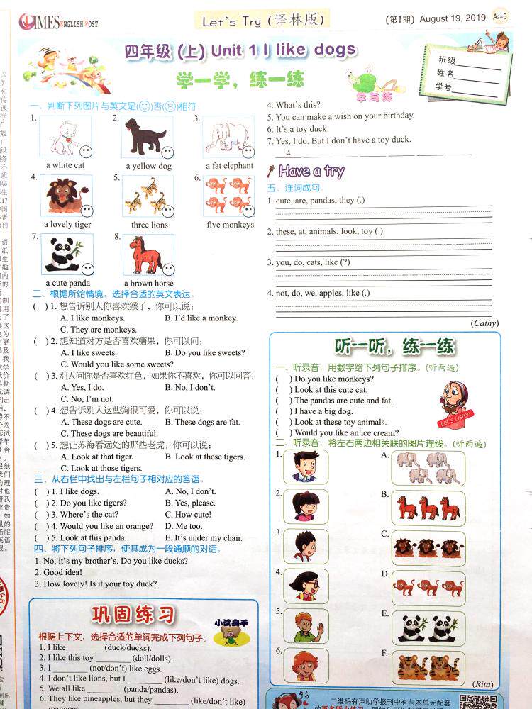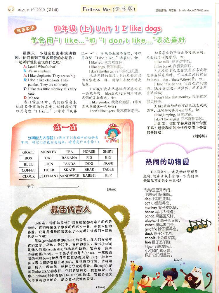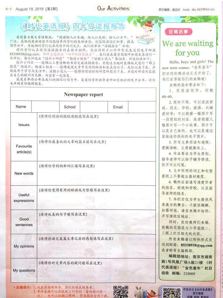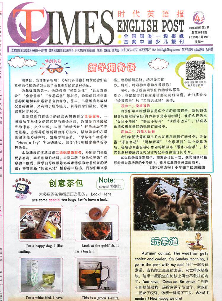 Times English News Primary School 4th Grade Book of English Newspapers Jiangsu Education Oxford Translation of the autumn semester 2020