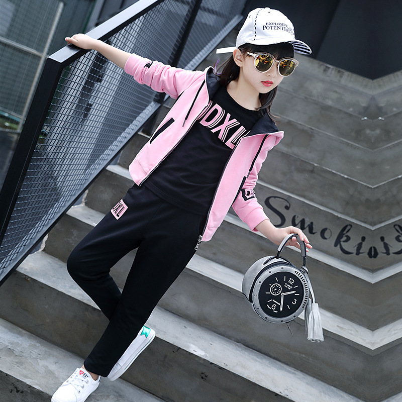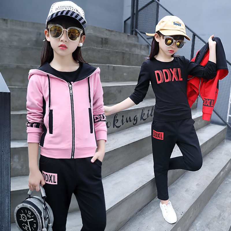 14 Chaoyang style girls suit autumn 8 to 10-15 years old middle-aged children 12 girls 11 autumn sports three-piece suit 13