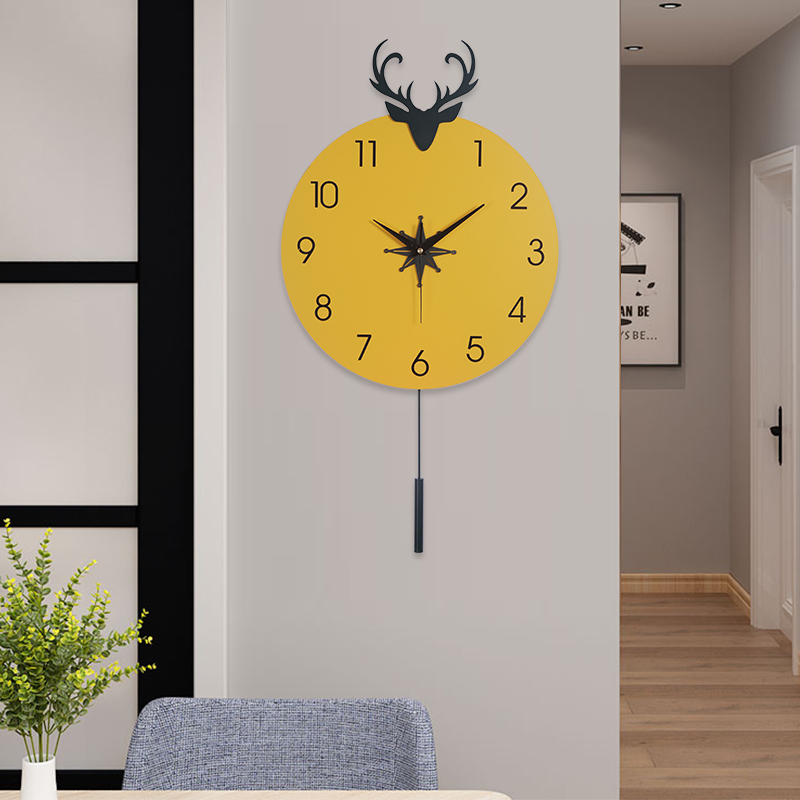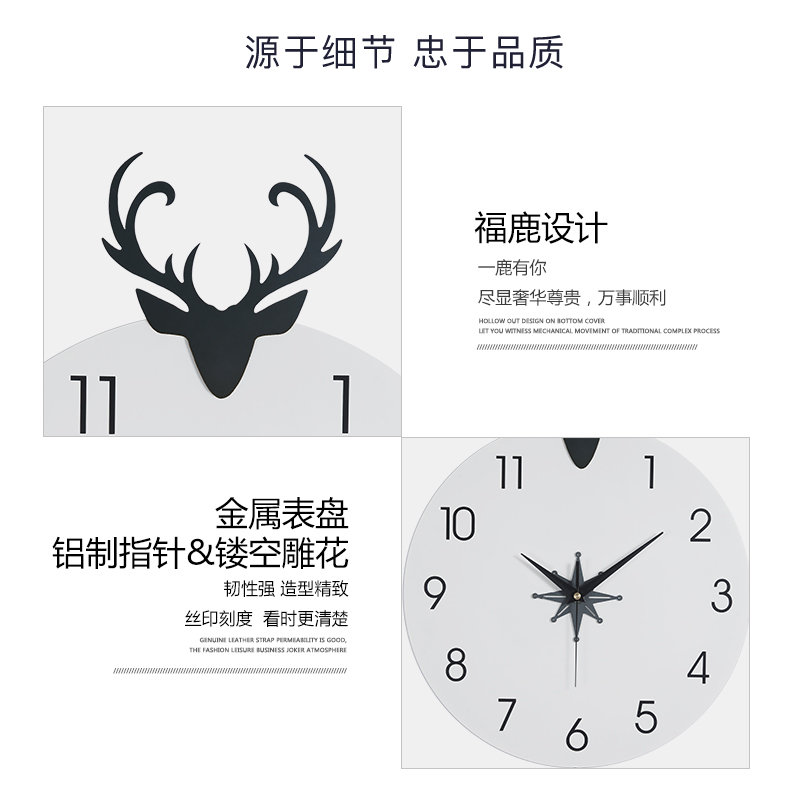 Internet celebrity minimalist Nordic mute deer head wall clock living room modern minimalist atmospheric clock home fashion creative clock