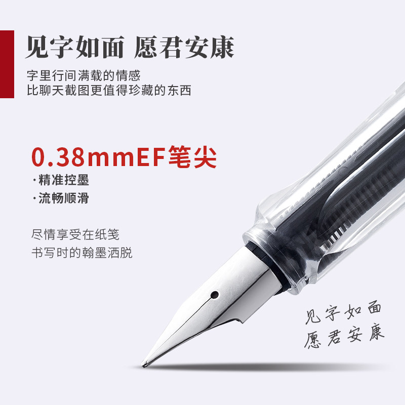 Essay note Handwriting Straight Fluid Style Pen 0 38mm Tthin Pointed Suction Ink Style Transparent Pen Type Of Pen Three-Five Sixth Grade With Elementary School Character Special Black Ink Sack Color 12 Boxes