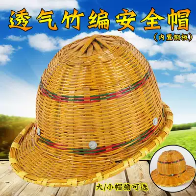 Bamboo safety helmet construction site breathable sunshade sunscreen construction summer protective rattan hat national standard safety helmet construction project
