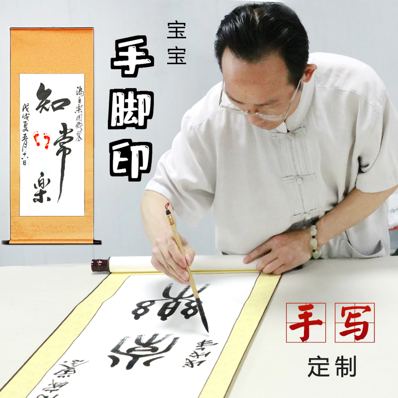 Handwriting (hand foot love depth) Three-ruler vertical shaft ancient copper (send tire seal) handwriting (heart-hearty handout) Three-ruler middle-of-the-court rice yellow (send tire seal) unwoven cloth print (hand foot erosive depth) 30 * 80
