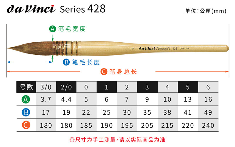 Da Vinci 428 mink hair brush watercolor pen water chalk set art student special pen watercolor pigment pen brush classical watercolor pen stroke hook line pen round head artist tool pen