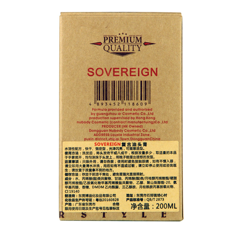 SOVEREIGN Vintage Oil Head Balm Gel Balm Water Moisturizing Strong Styling Large Back Hair Wax for men