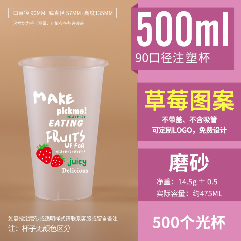 500ml net red 90 caliber disposable milk tea cup frosted plastic commercial food grade strawberry high permeability injection cup