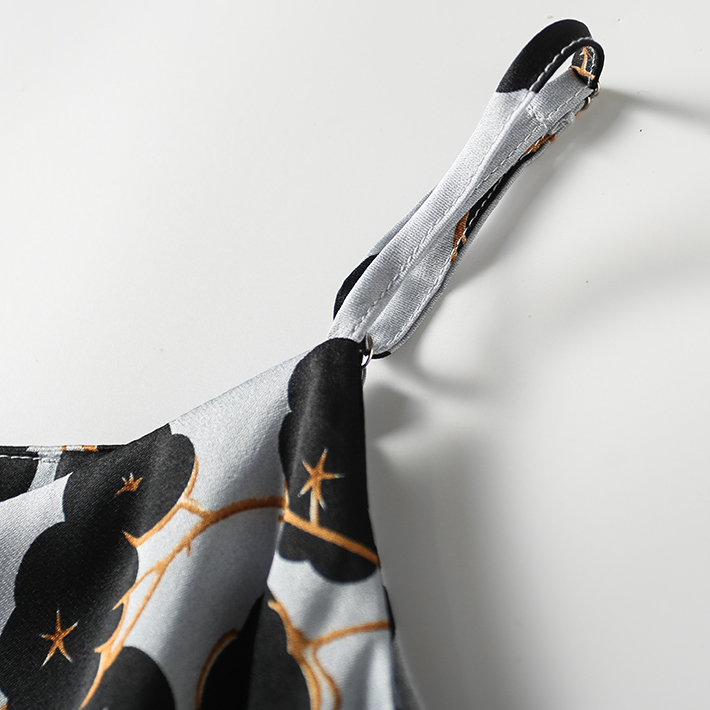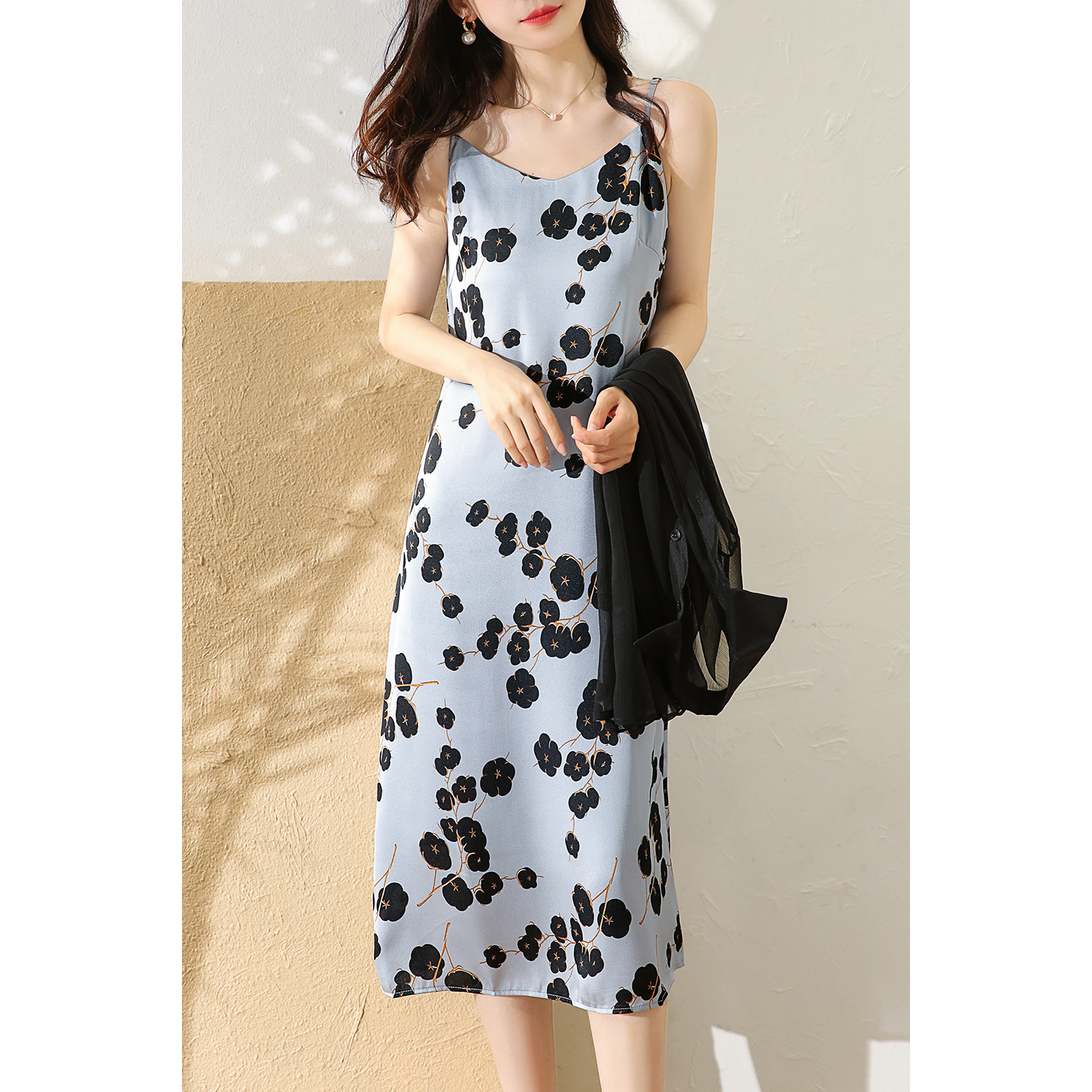 (Non-refundable and non-exchangeable for off-season spikes) Glossy suspenders elegant flower branch plum blossom print dress