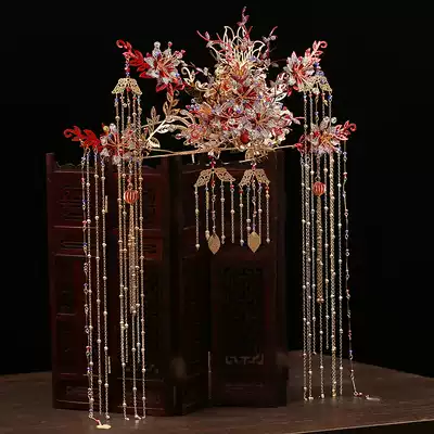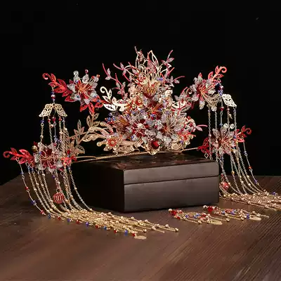 Full Tao bride 2021 New Phoenix crown Xiuhe clothing Dragon Phoenix hanging hair accessories atmospheric luxury Chinese Gold red costume