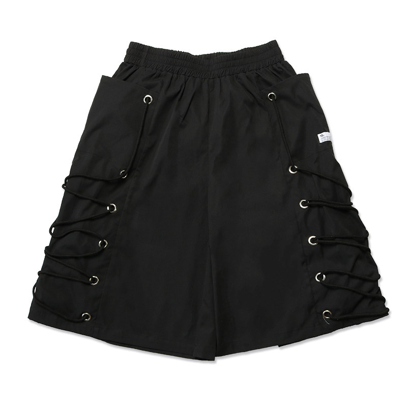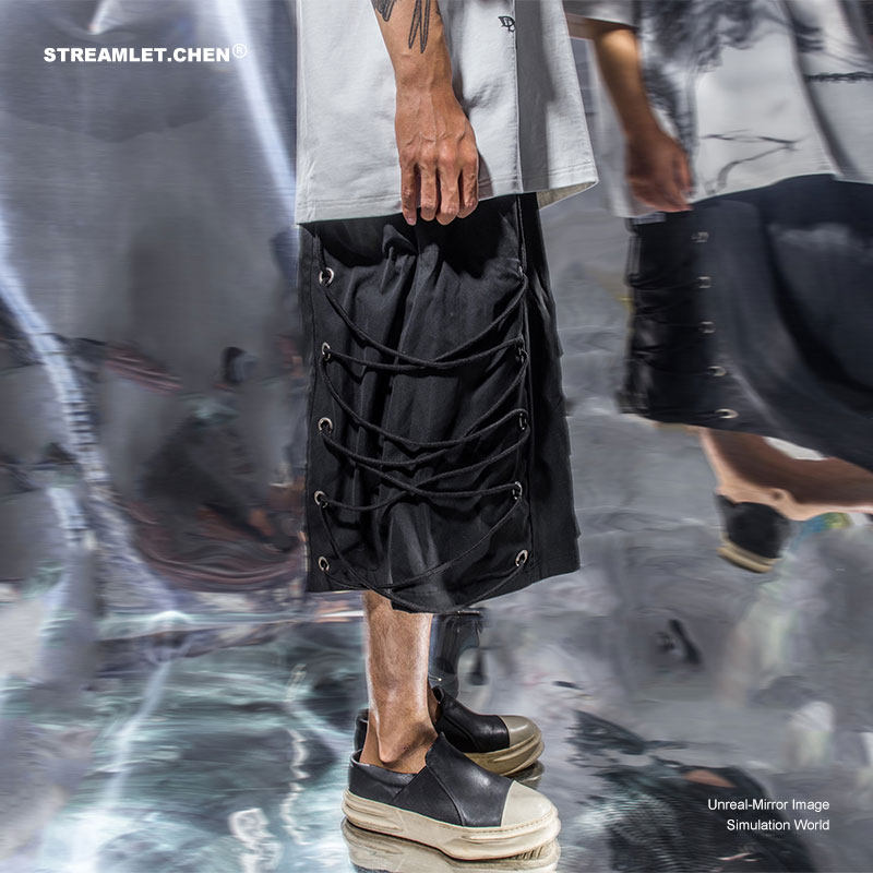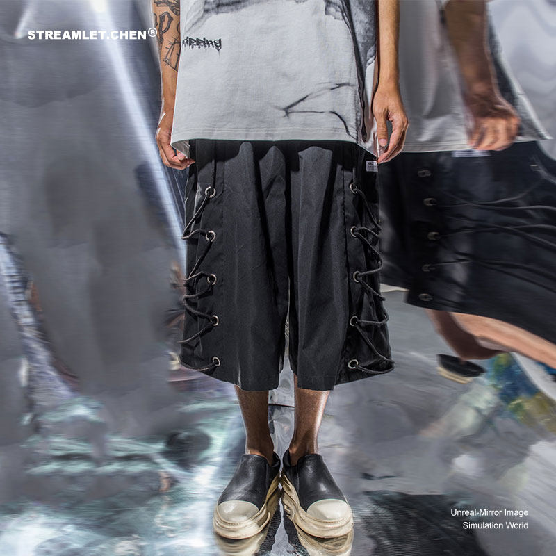 STREAMLET CHEN:OVERSIZE SHORTS Cut-out cord overlay Oversized cropped trousers