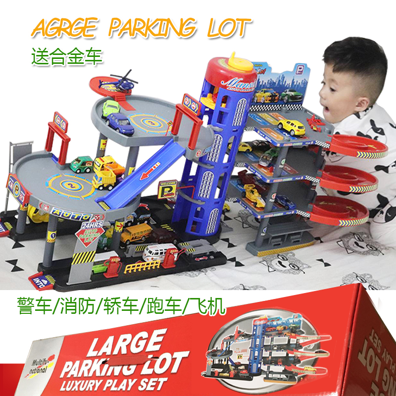 Large car scene parking lot Children's toy rail car model boy 3 years old 4-5 years old Puzzle child Six one