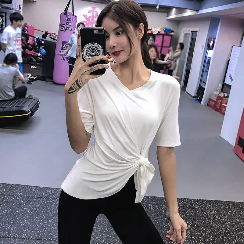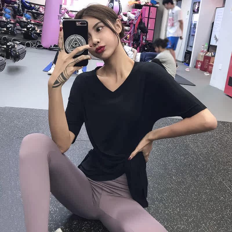 Fashion v-collar loose running Short sleeve large-yard yoga clothes speed dry t-shirts thin shirts