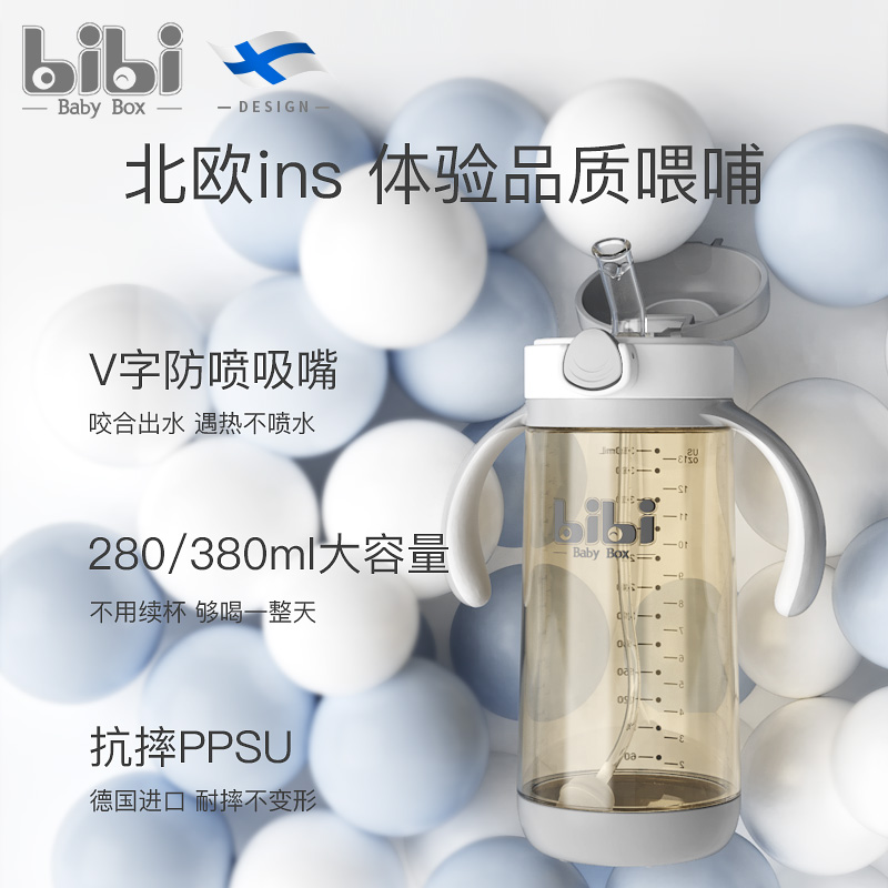 Finnish bibi children PPSU straw type learning cup bottle big baby out of the portable drinking cup drinking milk leak-proof