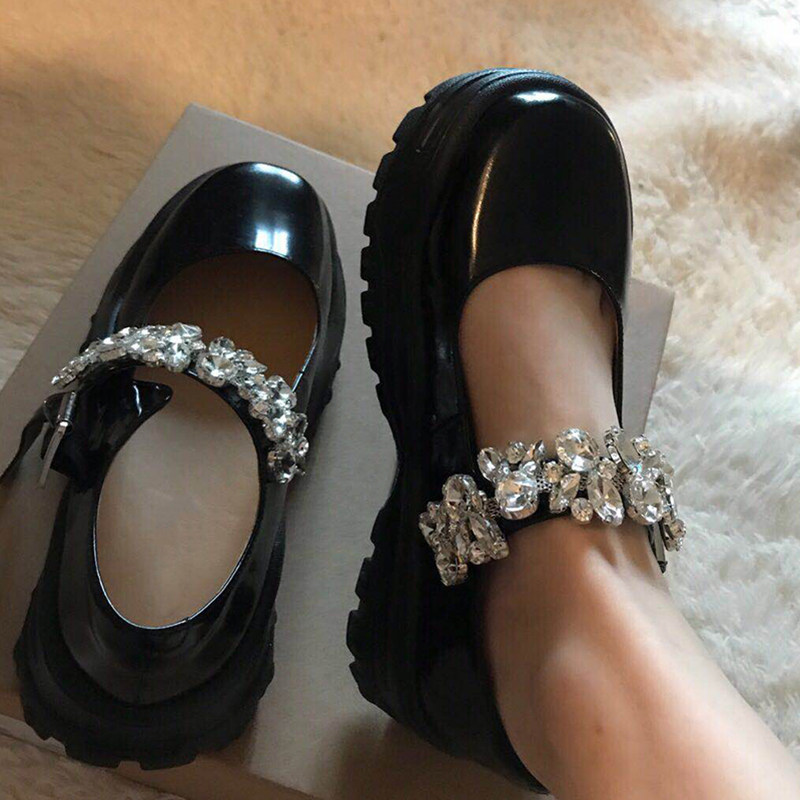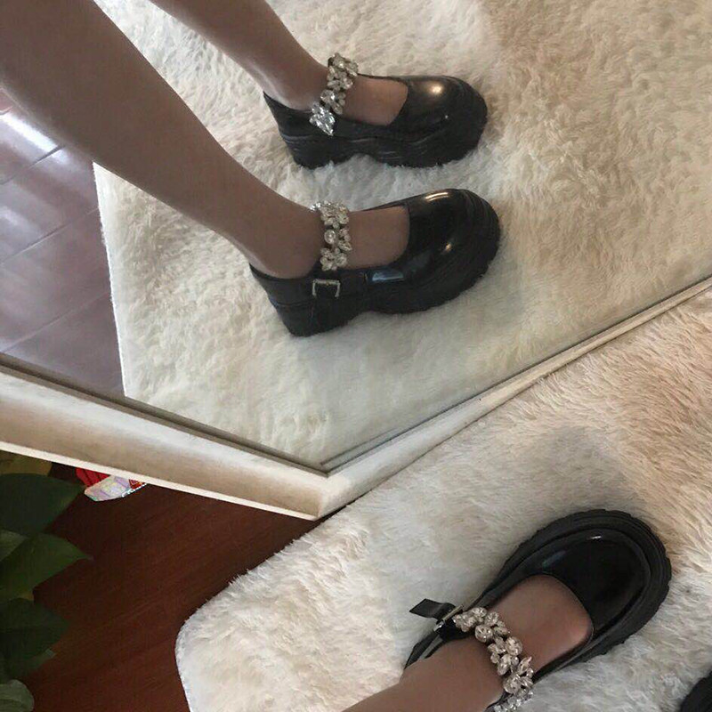 Deficit with clear cabin Giants slim and small crowdsourced personality Water Diamond Thick Bottom Mary Precious Shoes-Taobao