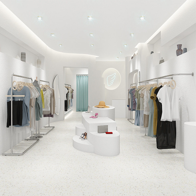 Clothing store display rack with wheels stainless steel golden island display side hanging floor-to-ceiling formal hanging women's clothing store shelf