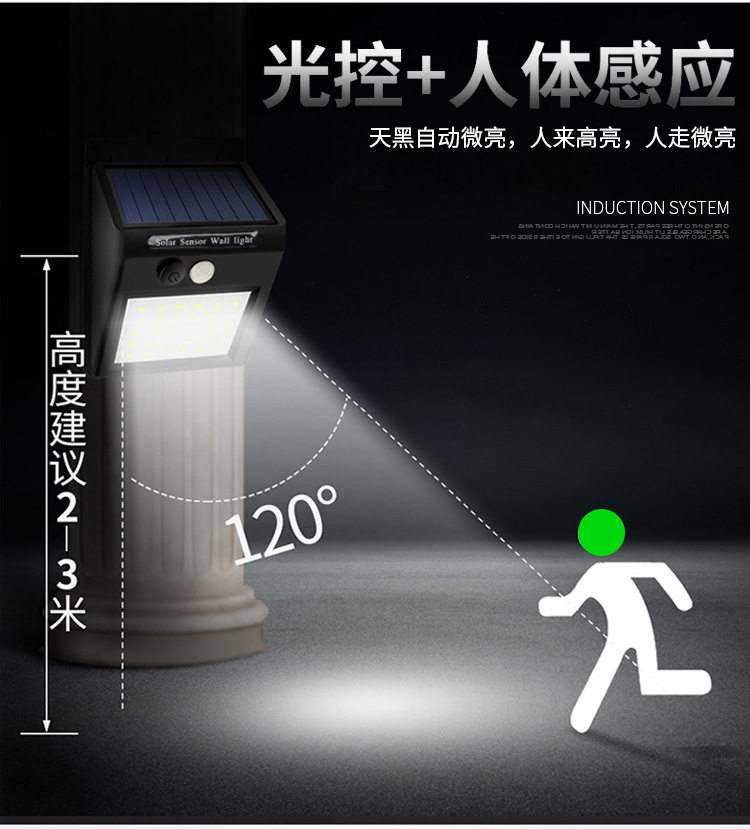 20 LED single function dark automatic brightness 25 LED induction single-function single-side light 48 COB three-function single-side glow 100 LED three-function three-sided light