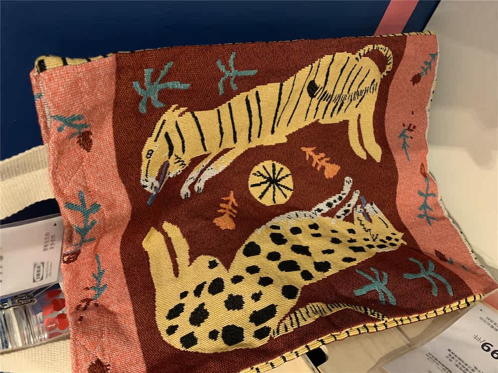 Shopping bags Guitar women shopping bags Dinosaur double sided shopping bags Black shopping bags Stick shopping bags Jump tiger shopping bags Red raft shopping bags Read newspaper shopping bags
