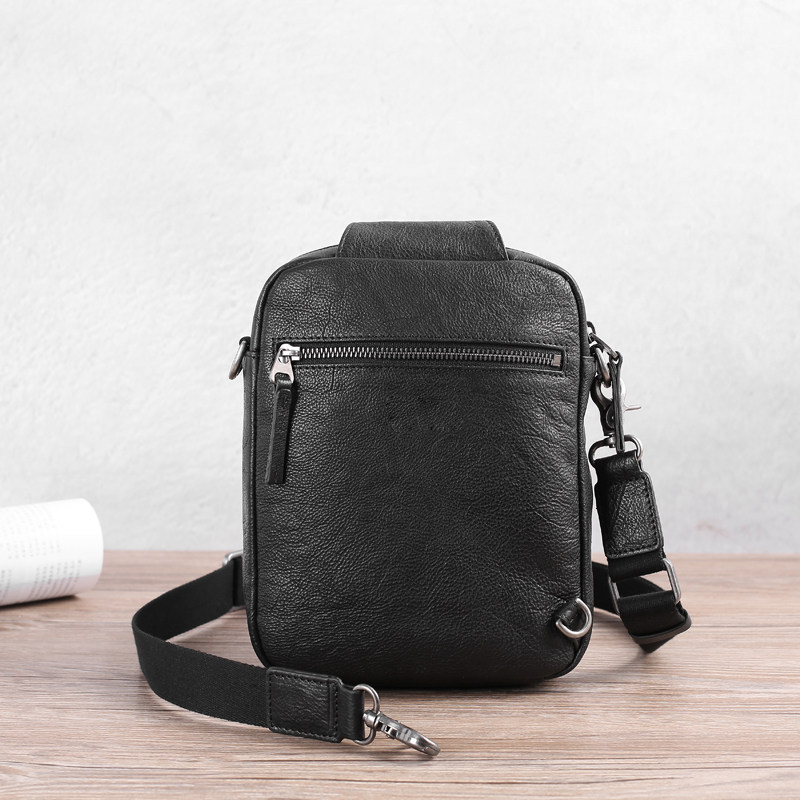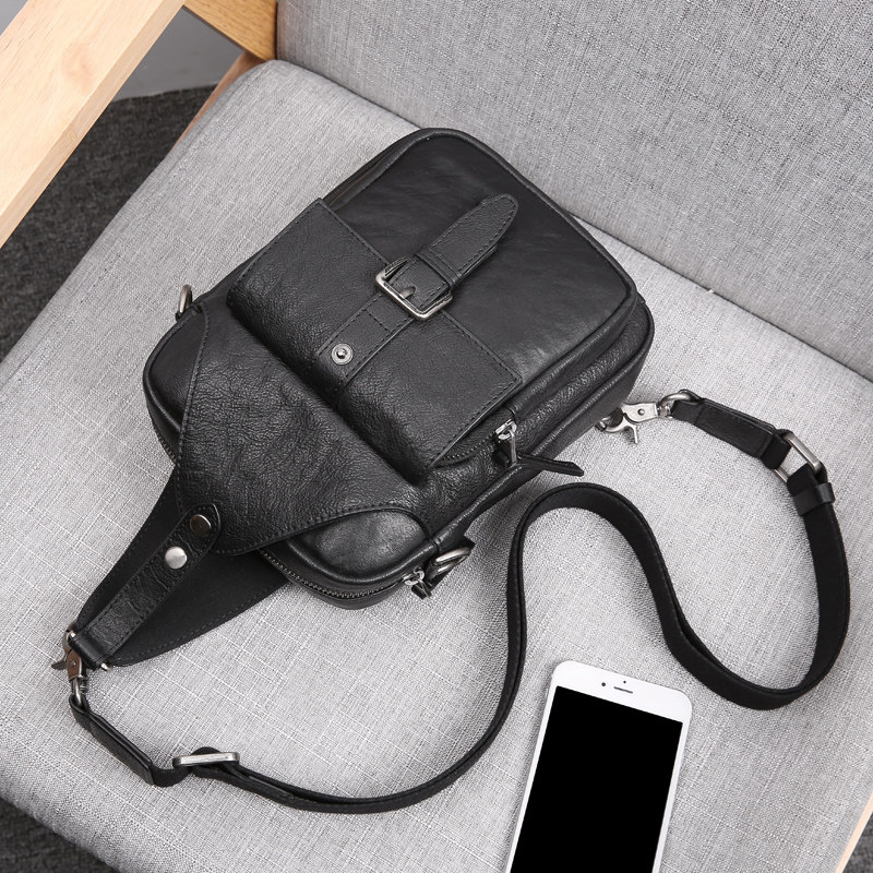Chest bag men's messenger bag genuine leather top layer cowhide multifunctional men's soft leather small bag fashion trend shoulder bag casual