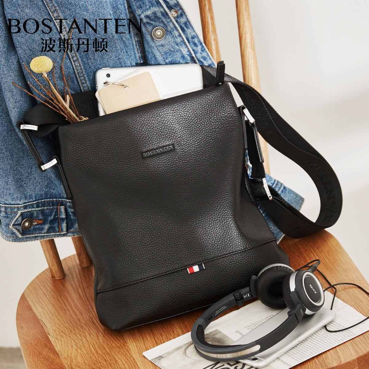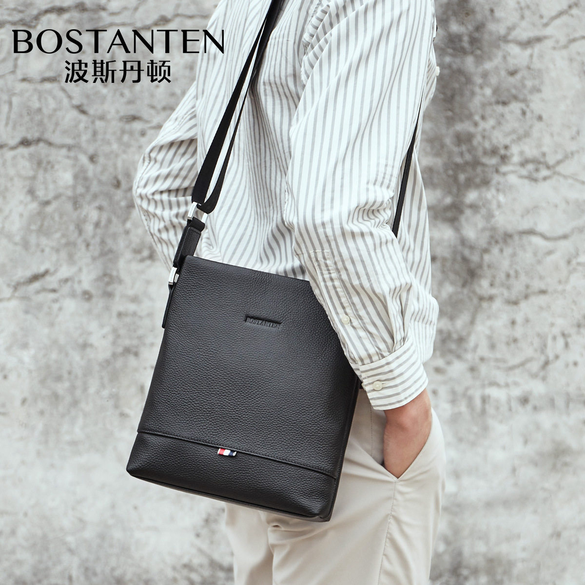 Bostenton's new men's shoulder bag leather messenger bag men's vertical leather men's bag business casual small bag