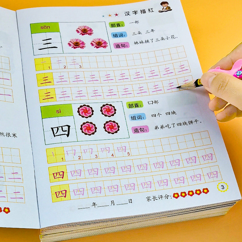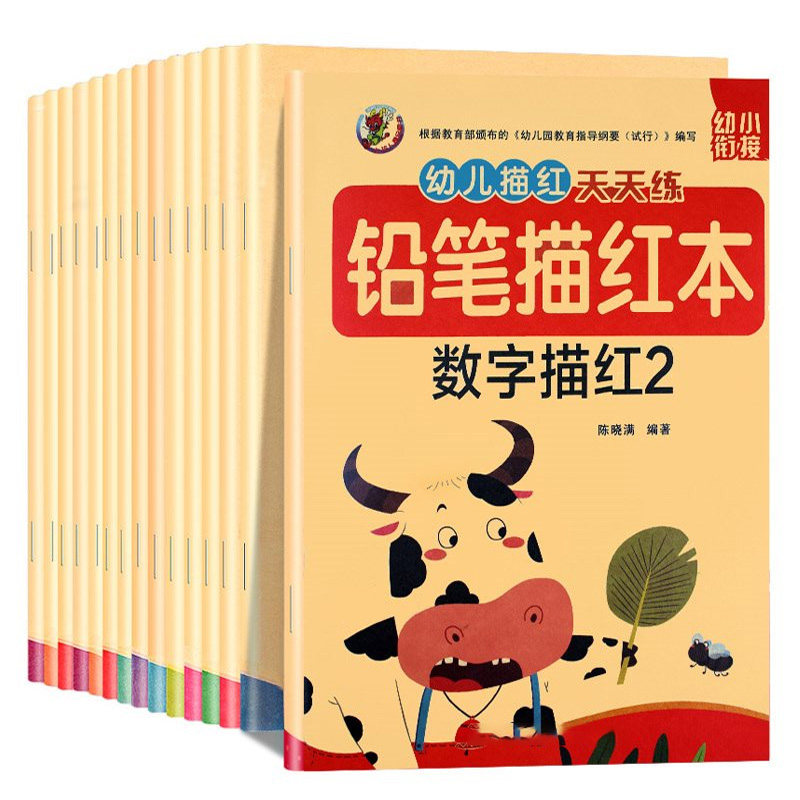 Kindergarten Sketching Benpinyin Digital Chinese Characters Pen Paramour Sketching Red Children Pencil Linen Sketch homework Ben beginner Enlightenment suit Maths practice book 3-6-year-old writing post