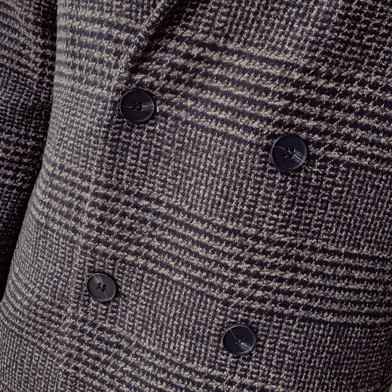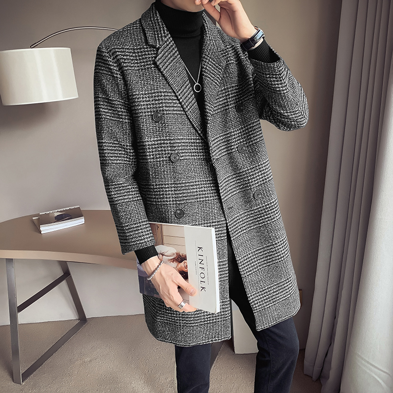 Autumn and winter plaid coat boys tide brand Korean version of the young handsome men casual double-row buckle hair in the long version of the windshield