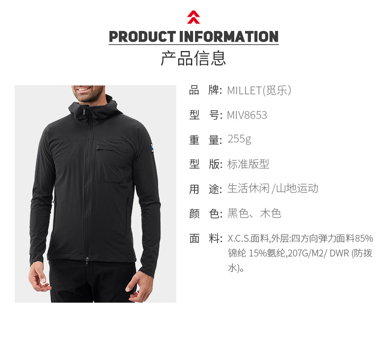 French foray MILLET trilogy Men's elastic breathable lightweight light shell coat MIV8653
