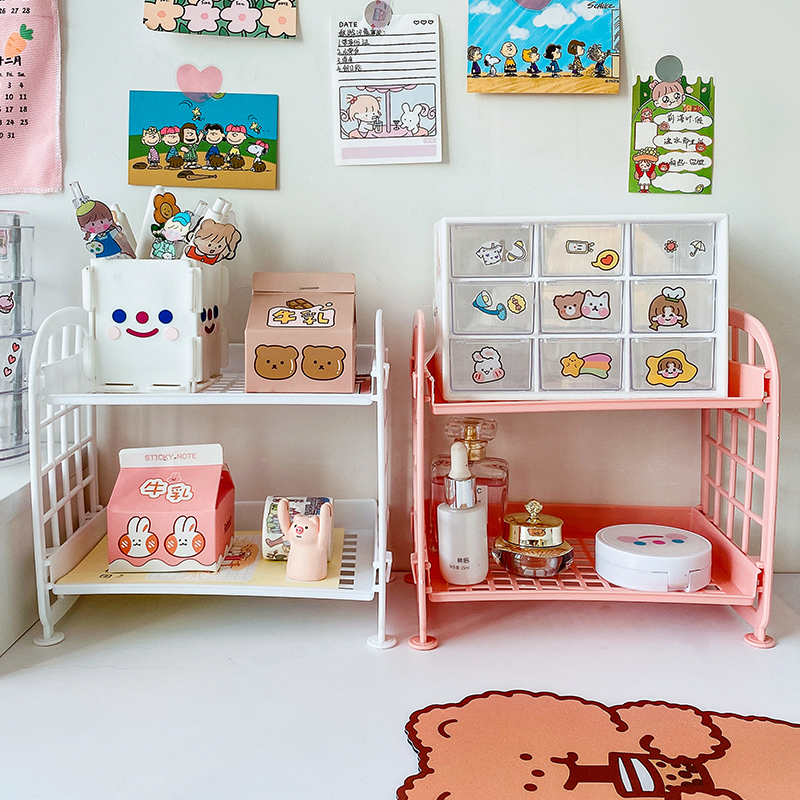 Simple double-deck desktop shelf collection box small fresh creative student dorm stationery debris collects artifacts