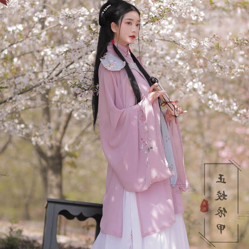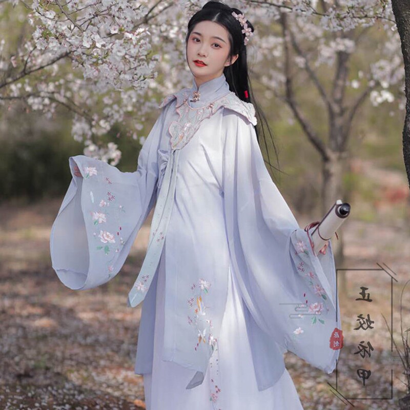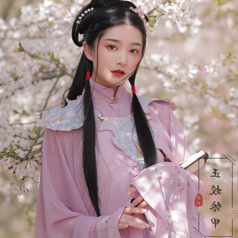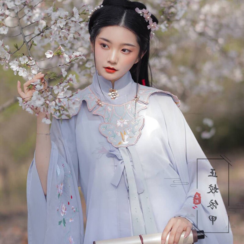 Ming system (Qi Du)Hanfu female original cloud shoulder stand-up collar placket kaftan Fairy summer thin section cabbage full set of summer