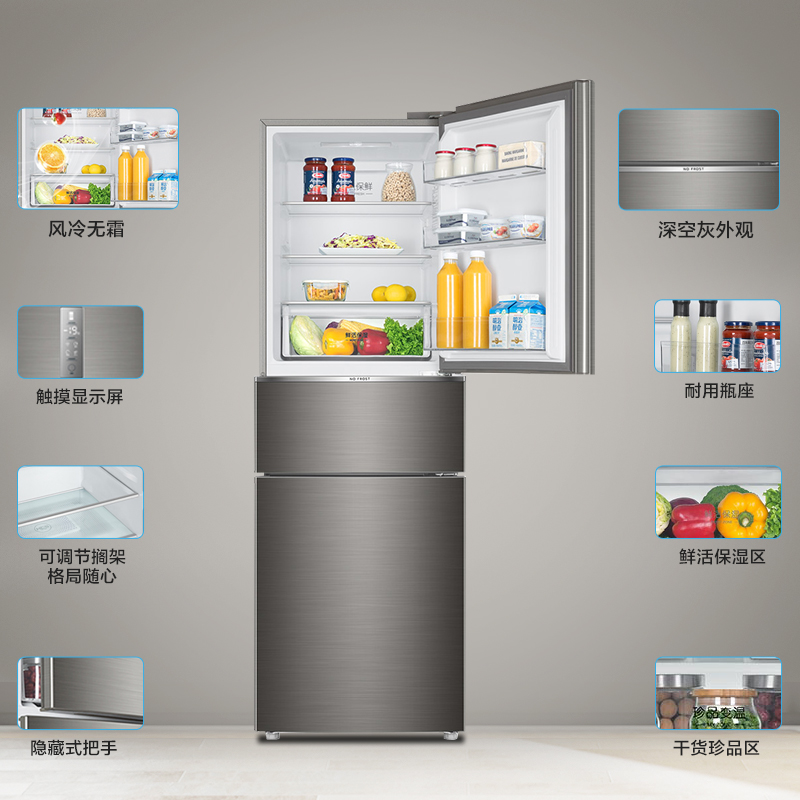 Haier inverter energy-saving household official three-door air-cooled frost-free small refrigerator flagship BCD-253WDPDU1