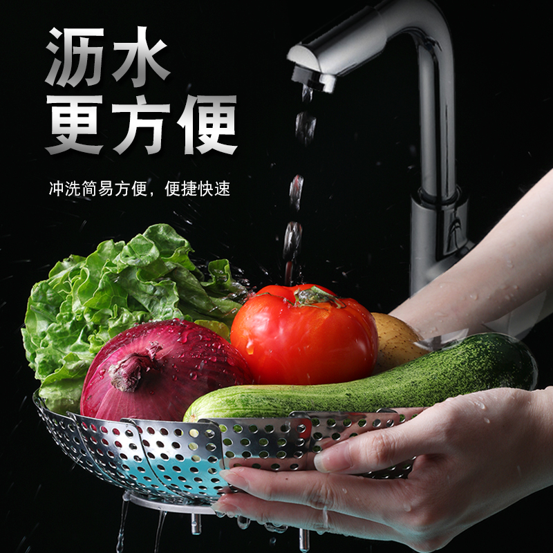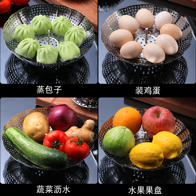 Creative stainless steel coil retraction steamer household steamer steamer cage with small steam cage multifunctional folding steam steam steam frame
