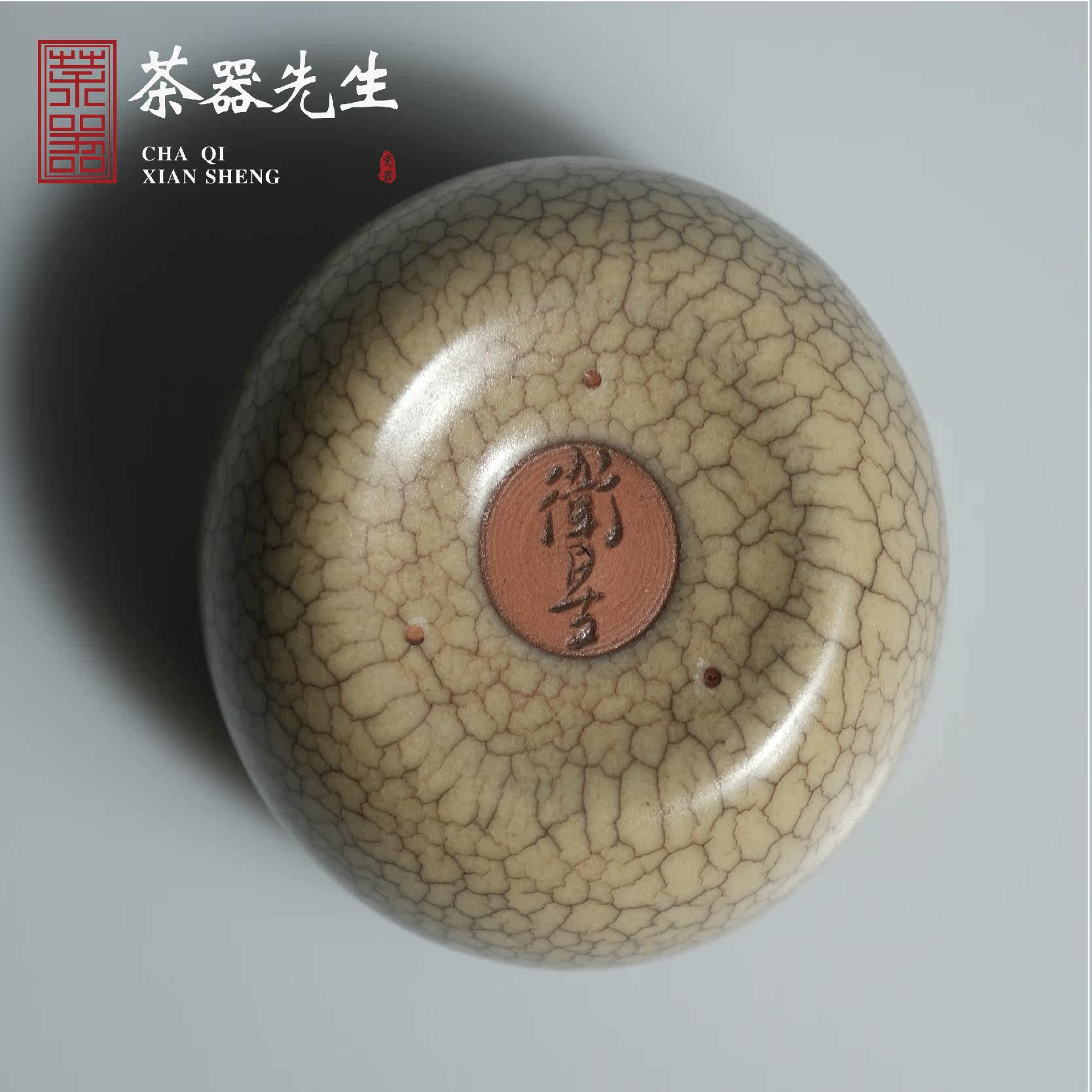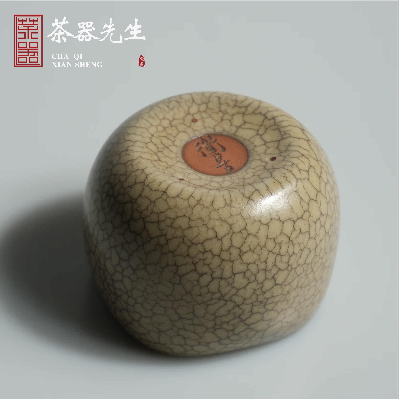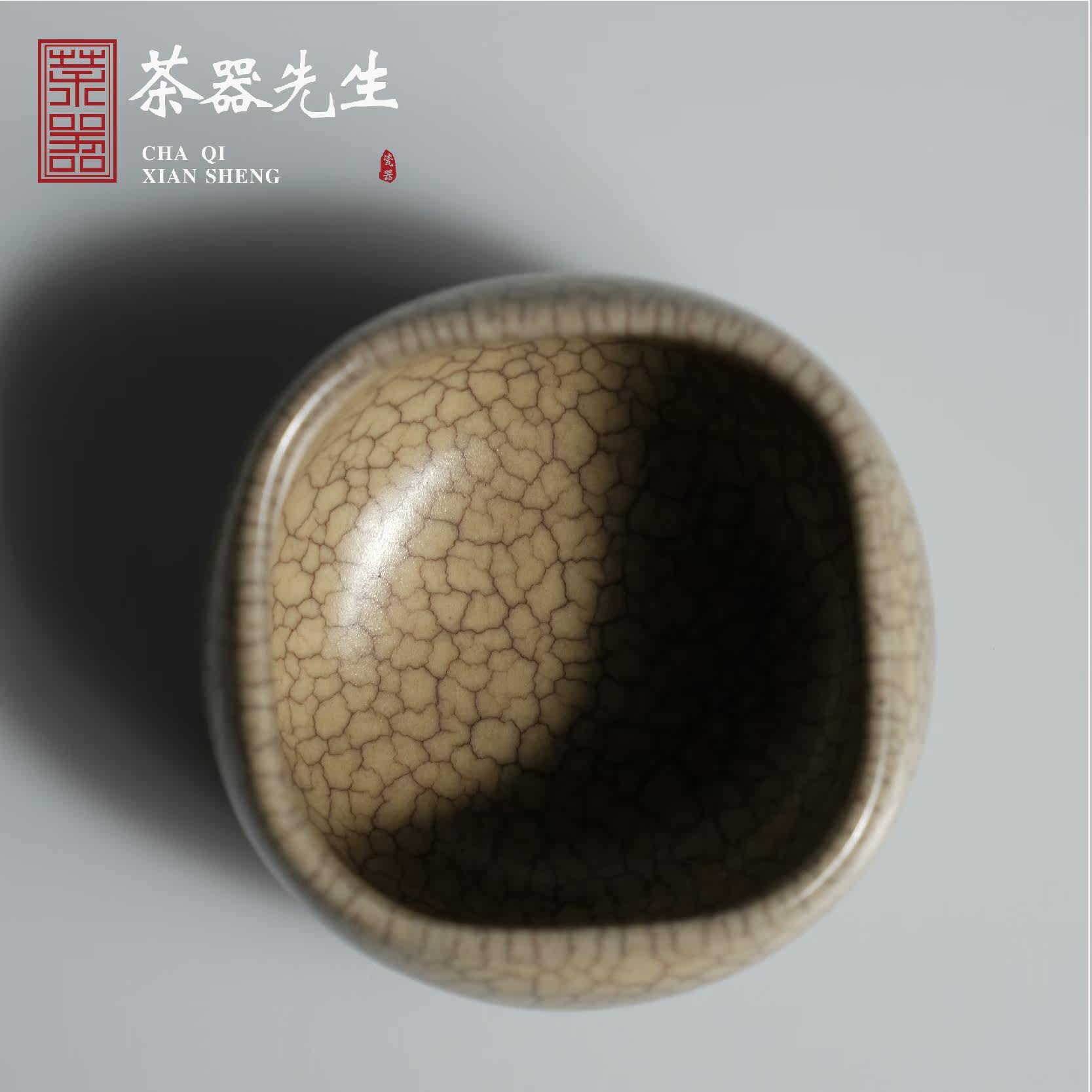 Longquan celadon Chen Weixing handed down from generation to generation Ge kiln open piece single master cup high-end tea cup ink pattern square nail cup
