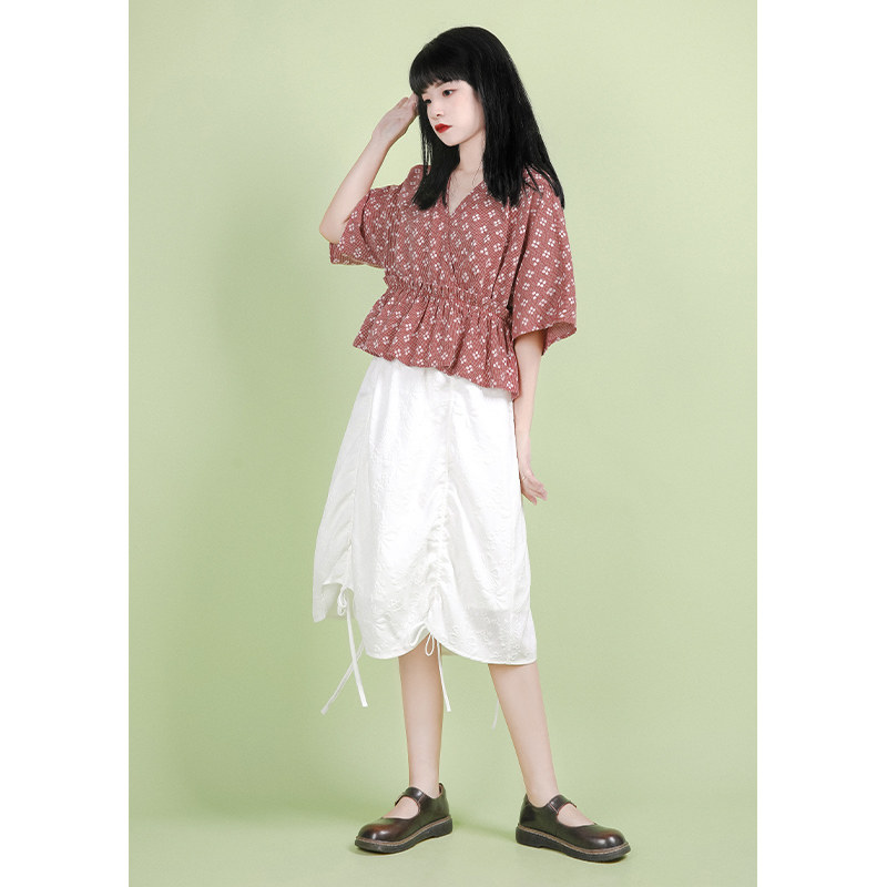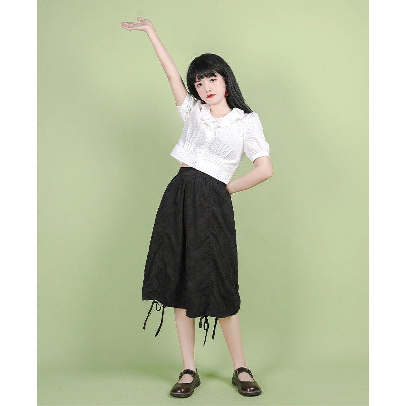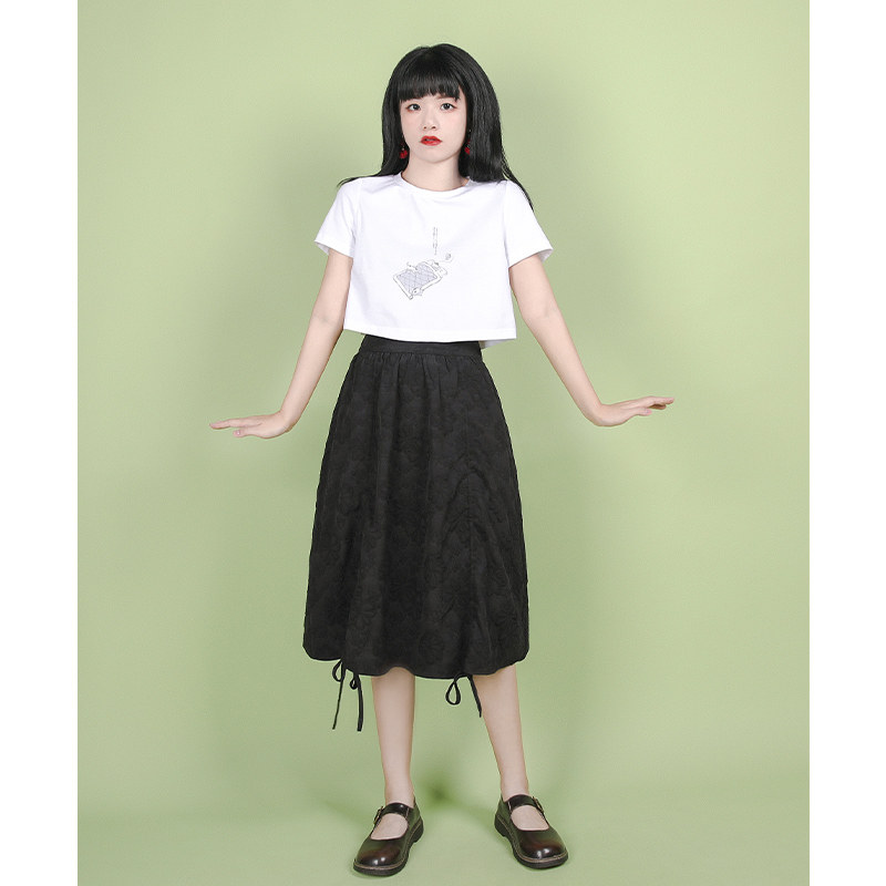 Small onion good cut original black and white draw rope skirt women 2020 summer high waist thin medium-length version of the irregular a-word skirt