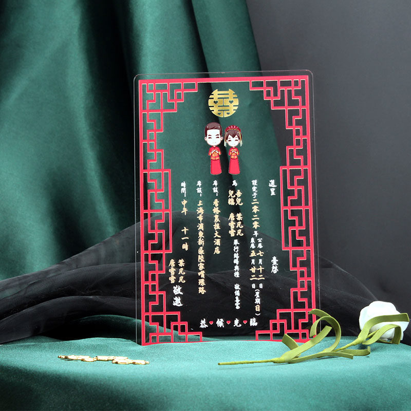 Chinese style wedding invites creative wedding supplies custom press crack cartoon wedding invitation