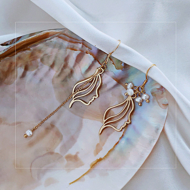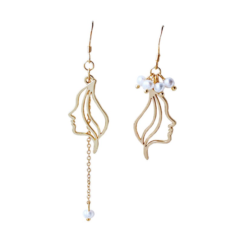 Niche Creative Abstract Line Face Earrings Femininity AB Asymmetrical Long High-end Pearl Earrings