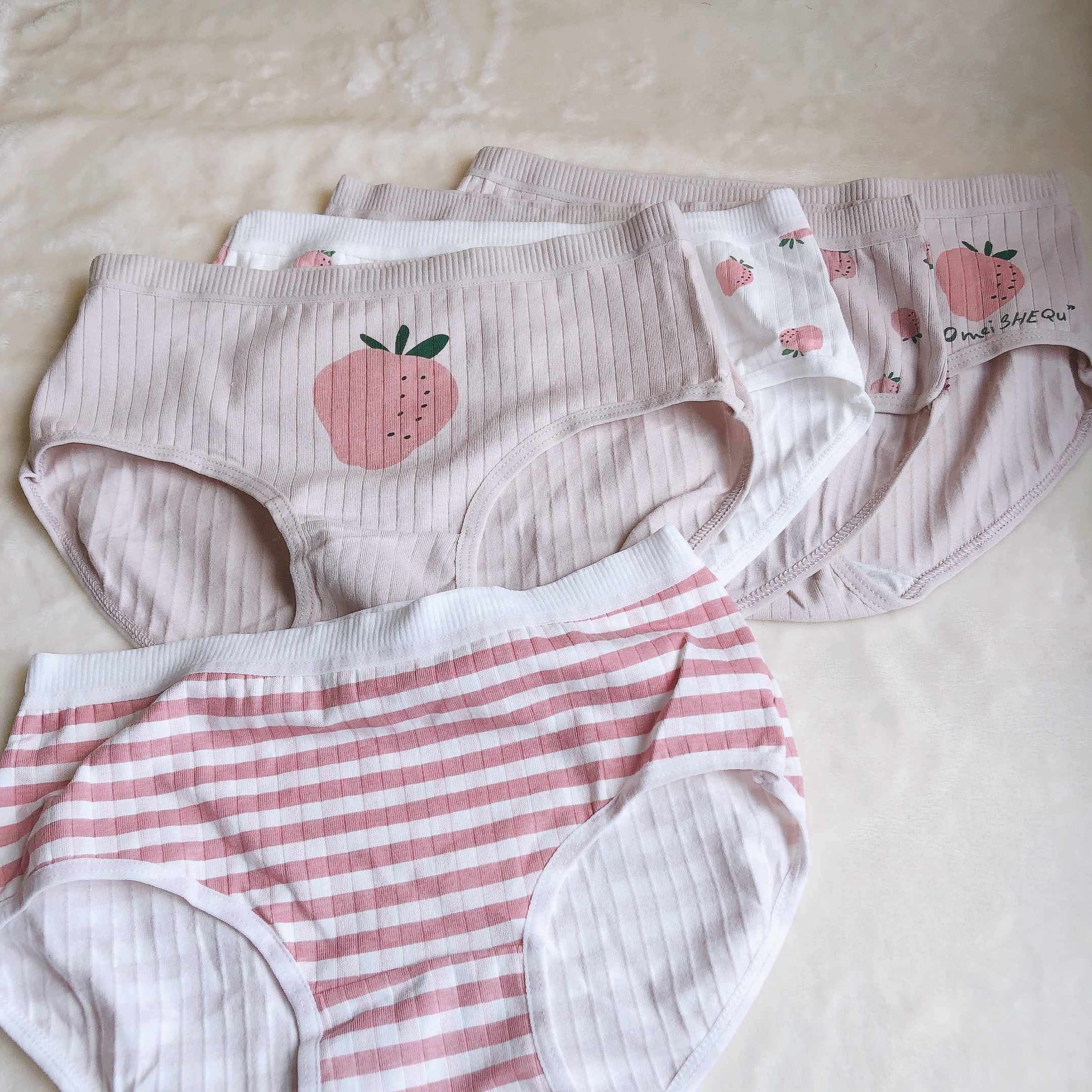 Deep Alley Homey Beauty Girl Lotus Root Powder Sweetheart Strawberry Checkered Triangle Pants Stretch Cotton Fresh And Cute Comfort Pants-Taobao