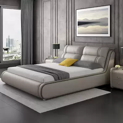 zhen leather bed modern minimalist master bedroom 1 8 meters double bed of small-sized Nordic 1 5 meters ruan bao chuang light luxury wedding bed