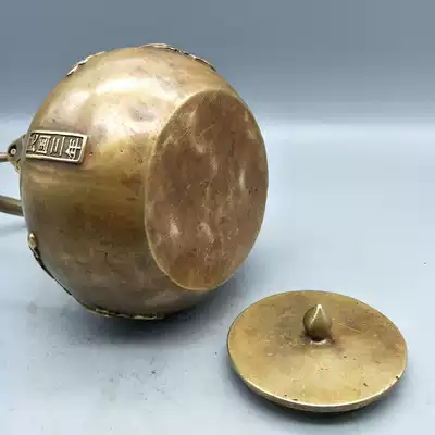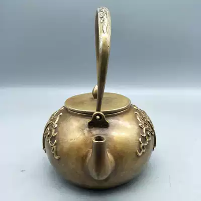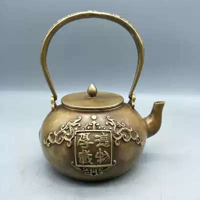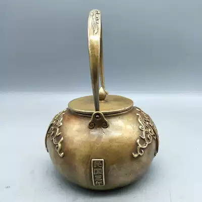 Boutique antiques collection brass tea kettle old objects antique Republic of China three years of virtue carrying round copper pot ornaments