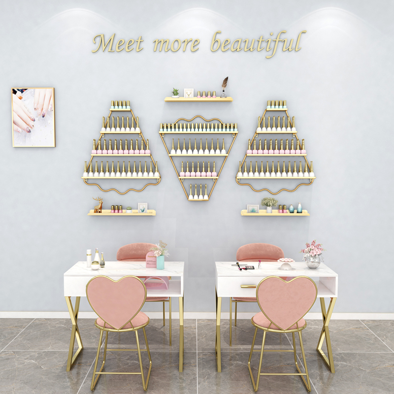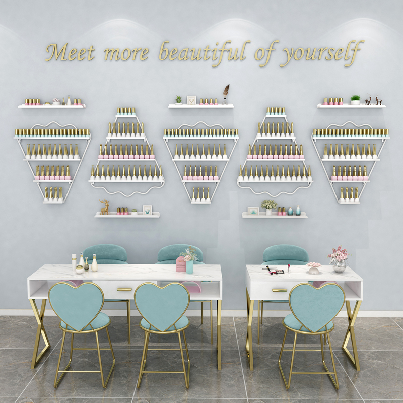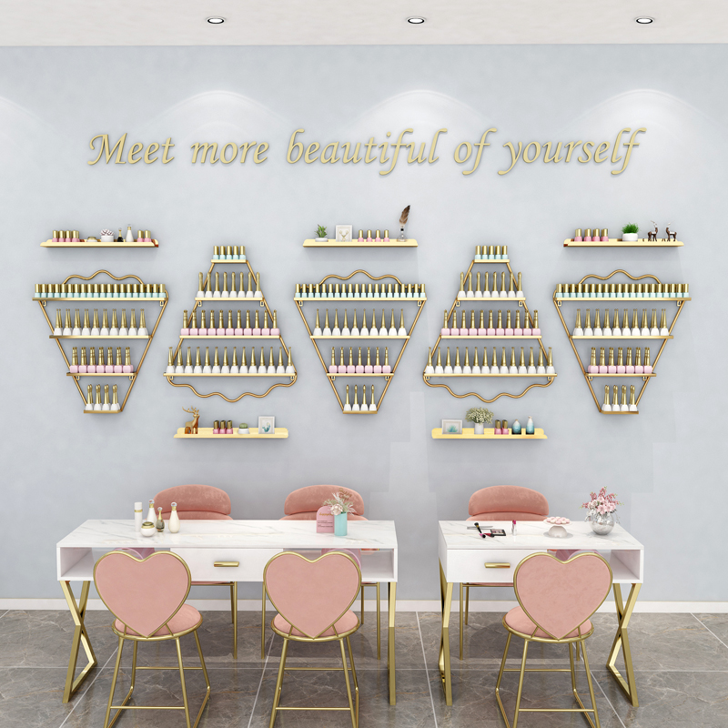 Nail art shelf display rack Wall-mounted storage rack Wrought iron nail polish glue rack Wavy pen glue storage shelf