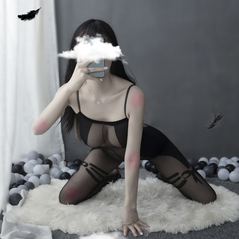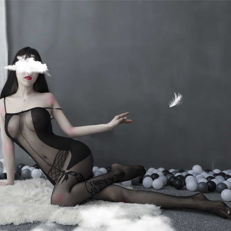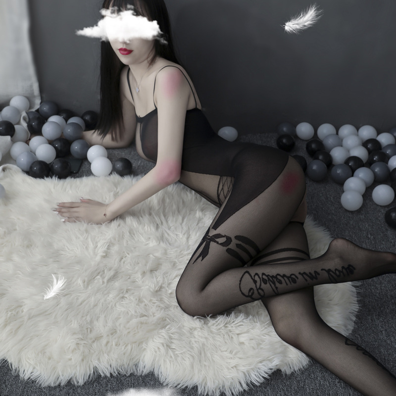 Nightclub crotch-open women's big brother sling ladyboys set one-piece stockings cd cross-dressing supplies sexy black clothes women