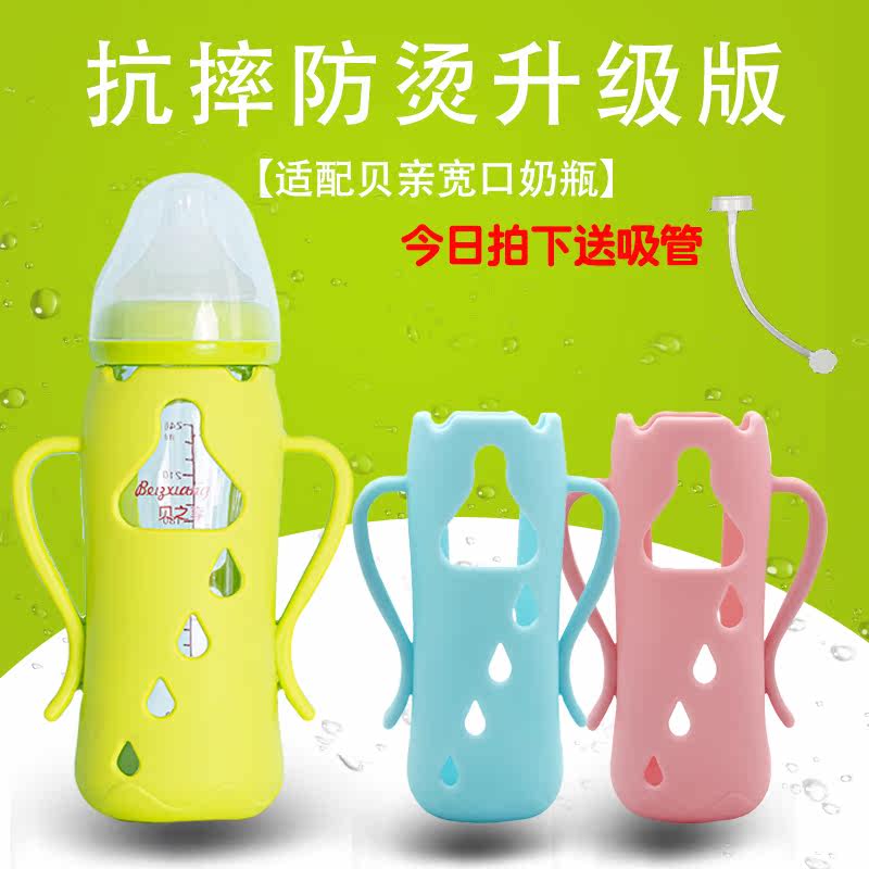 Adapted newborn baby baby Beloved glass bottle anti-burn silicone protective sleeve anti-fall cover universal accessory handle